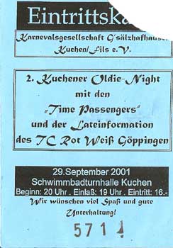 Bilder Oldie Night 2001 mit der Band "Time Passengers"   <- zurück Alle Bilder und Logos copyright www.kggsaelzhafhausen.de