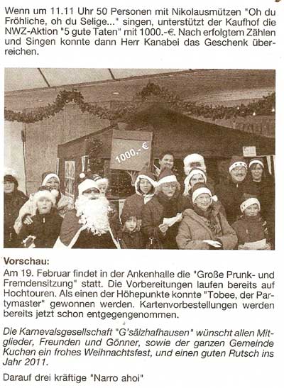 Bericht im Gemeindeblatt - 23.12.2010 Alle Bilder und Logos copyright www.kggsaelzhafhausen.de